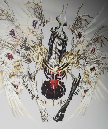 Notably, Number 4 is completely missing from his wings. People could easily assume that perhaps this “4” referred to Louis, and that the remaining sin that is not mentioned could be ‘Envy’. This was confirmed at the Expo, to the point that it was said that the “4” was going to be drawn on Louis' thigh, but it was ultimately discarded.