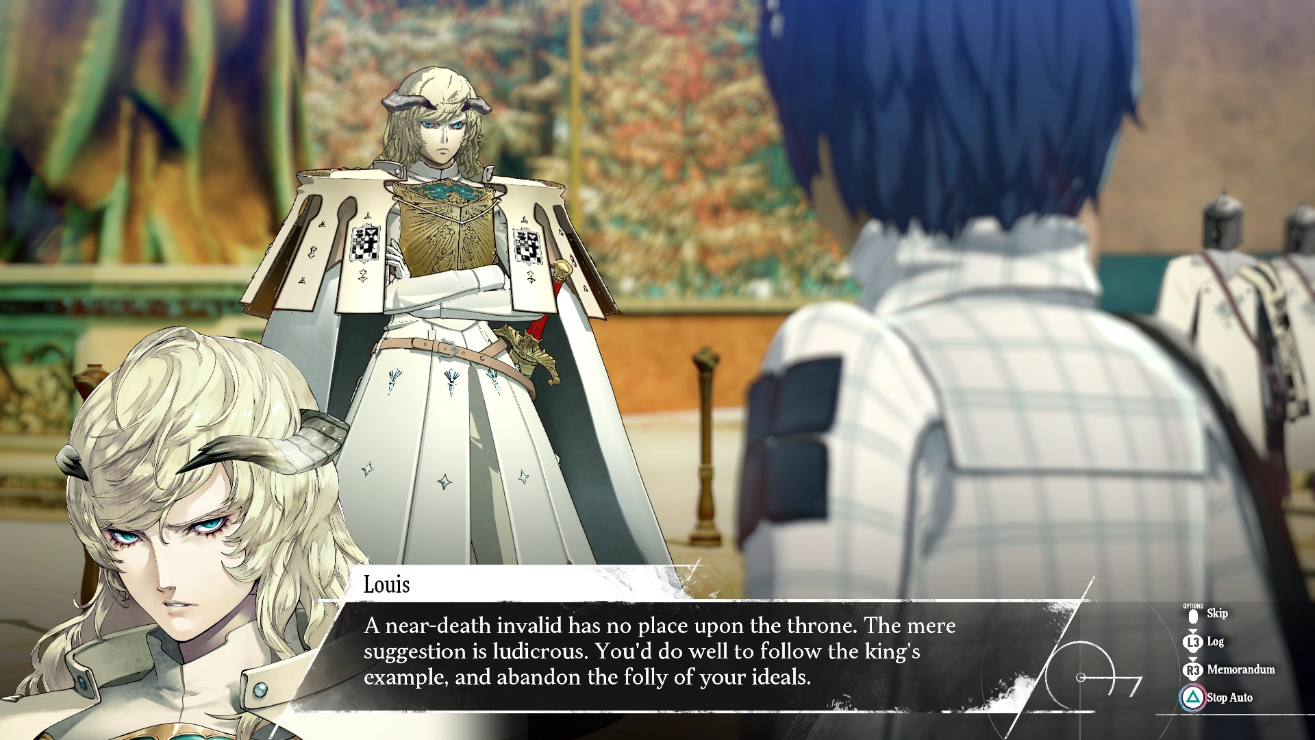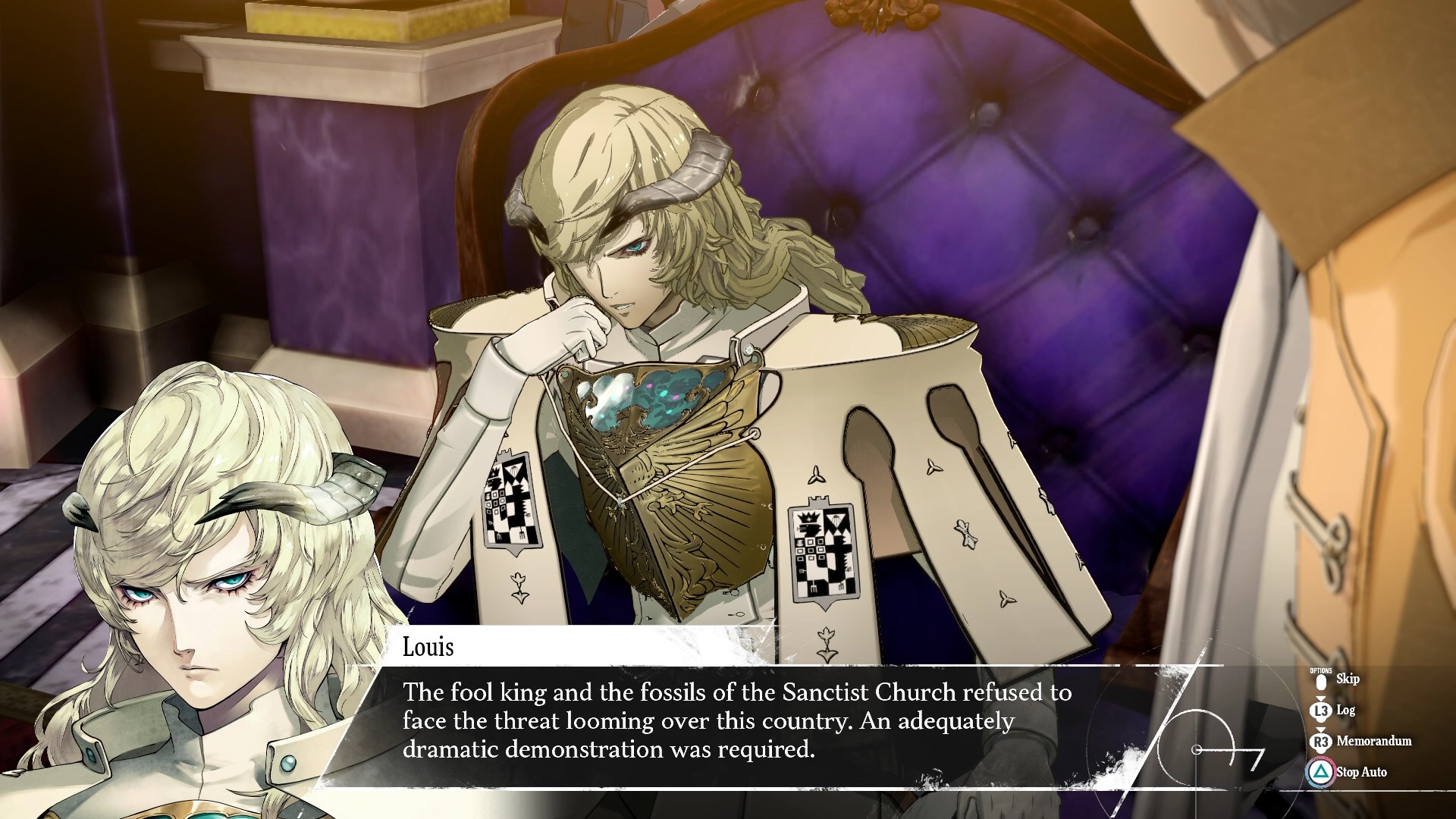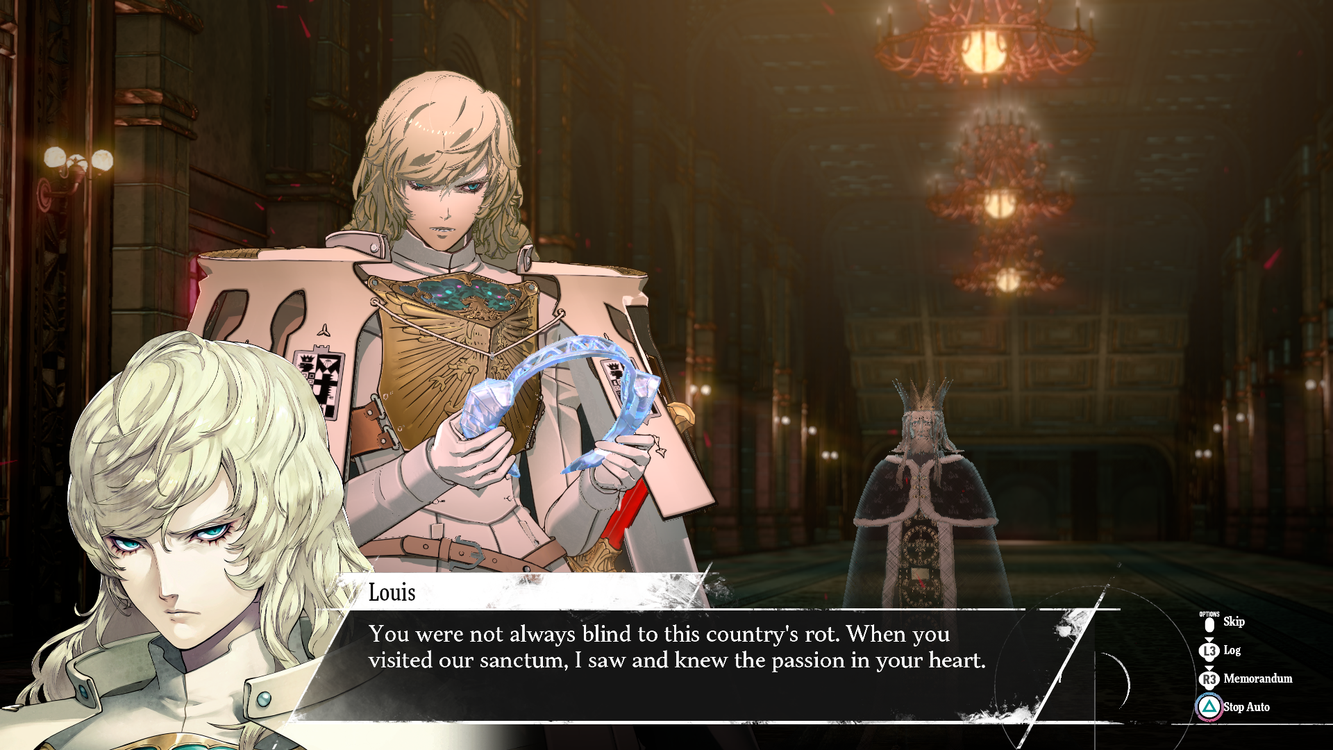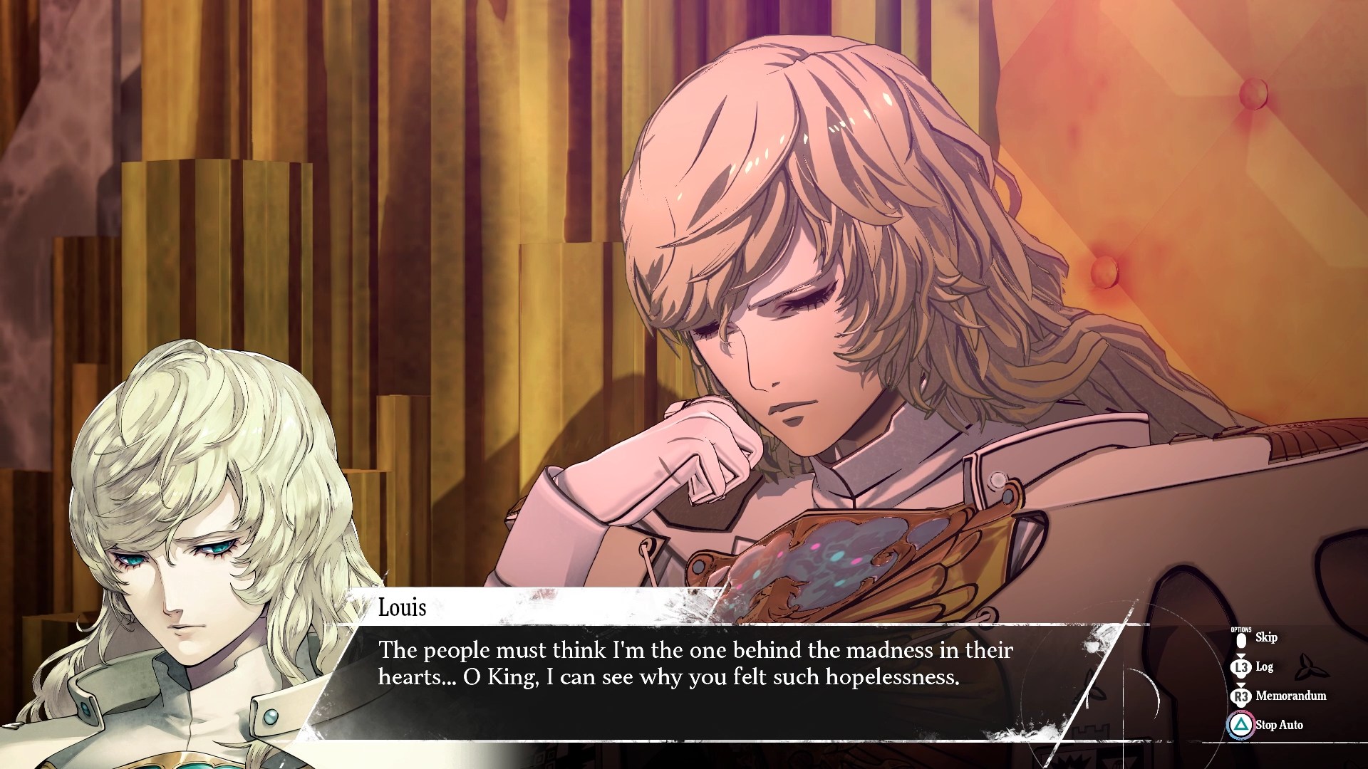 The next set of cutscenes that follow after that are tied to the plot, but it isn't until Louis formally arrives at the royal palace that another relevant scene involving him takes place, and probably the most important one concerning him and Hythlodaeus.