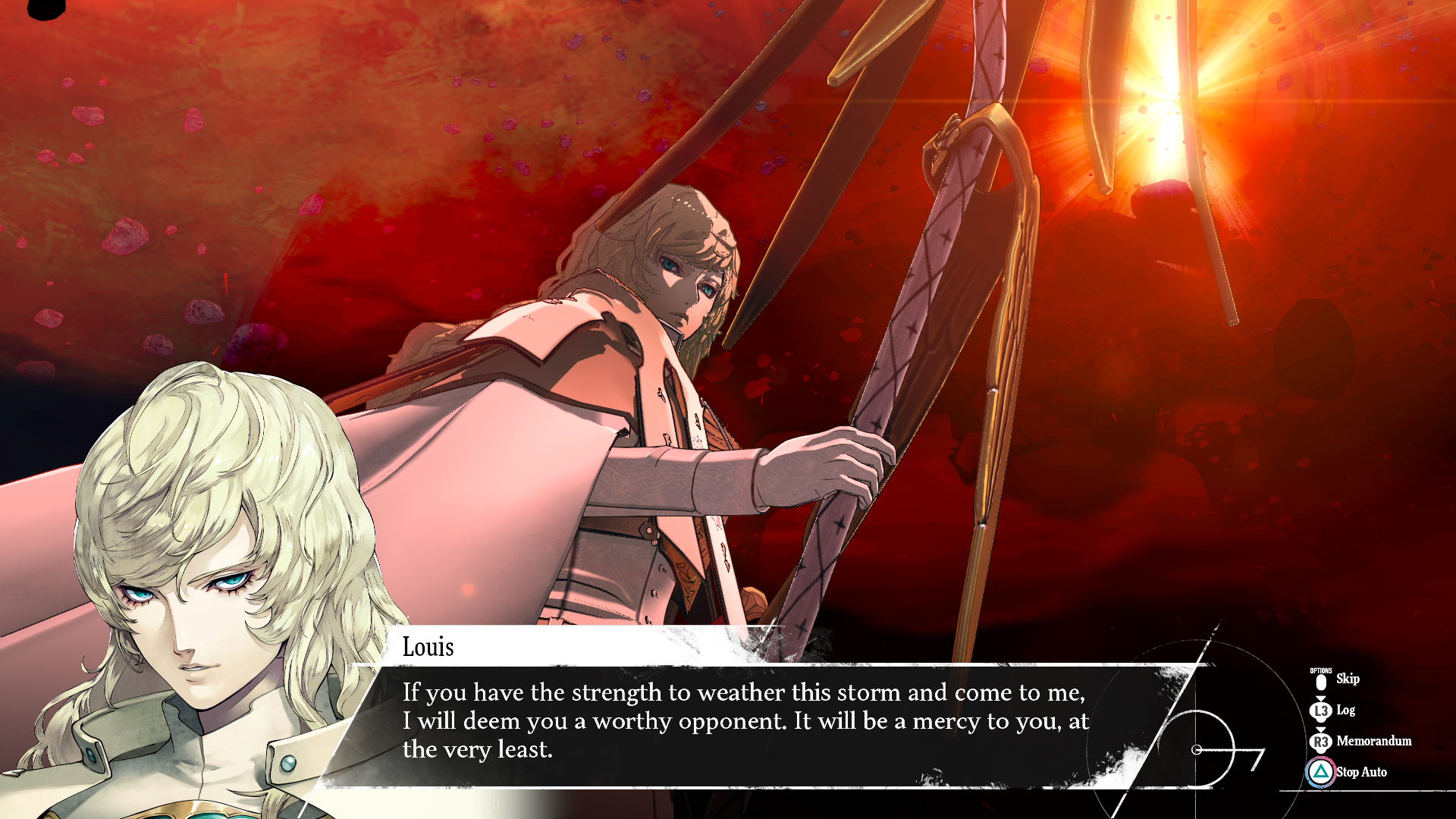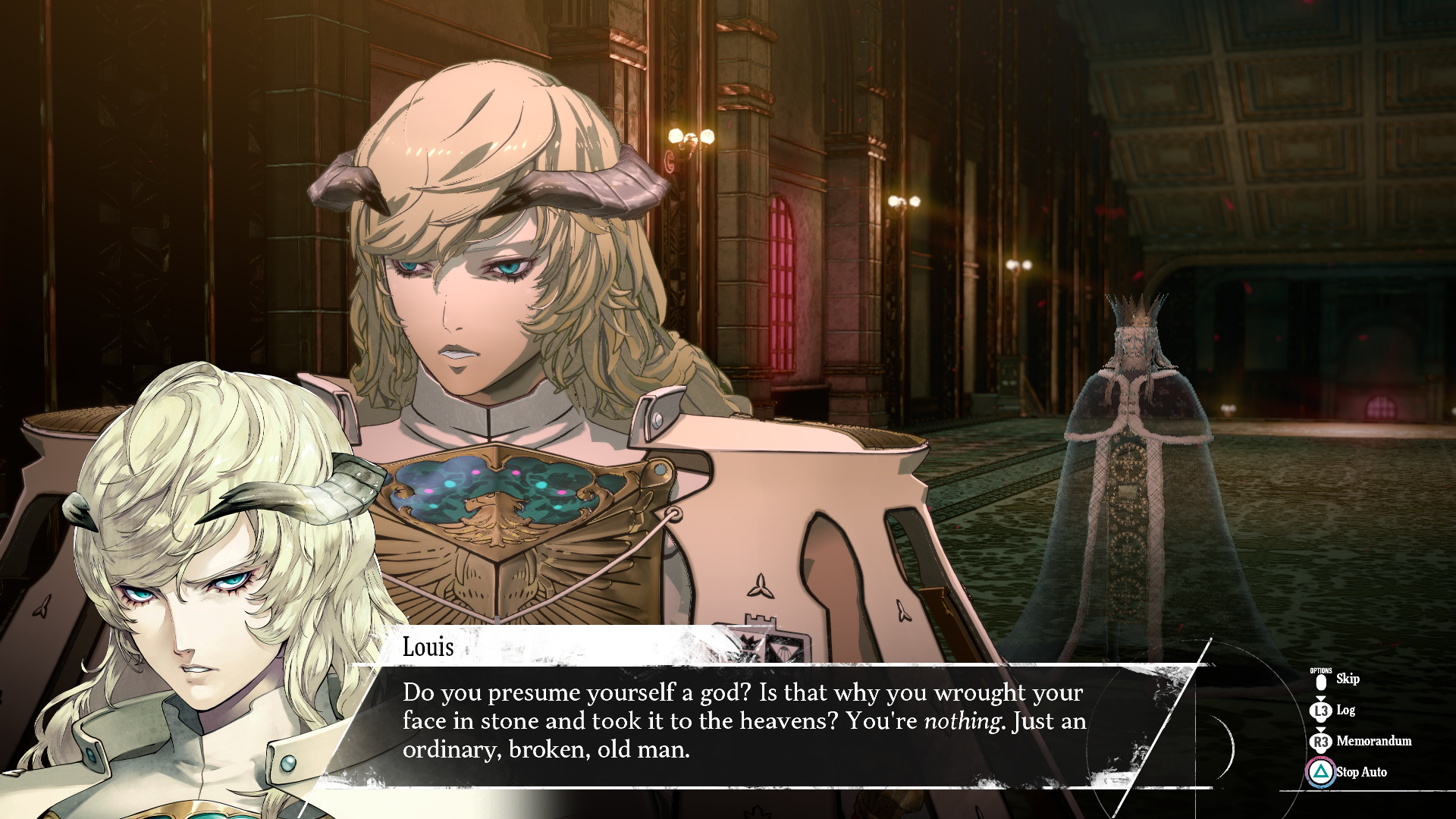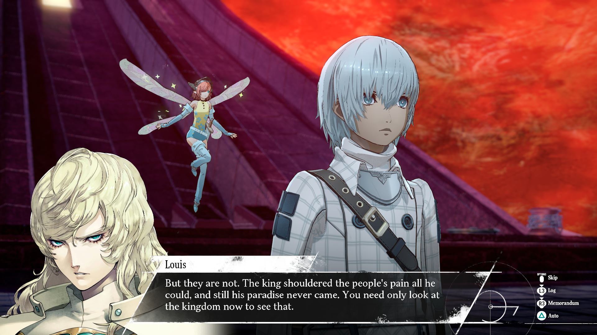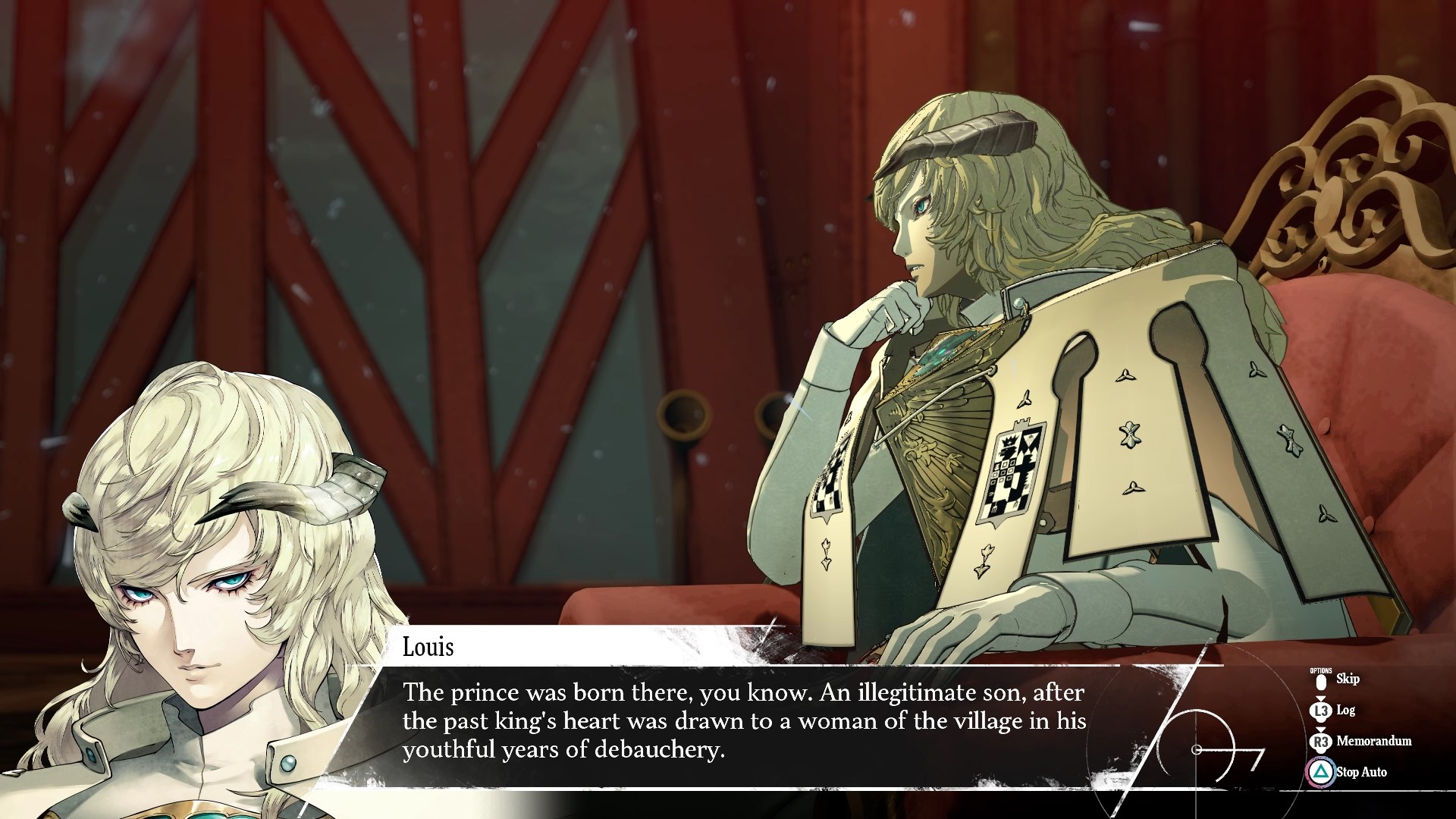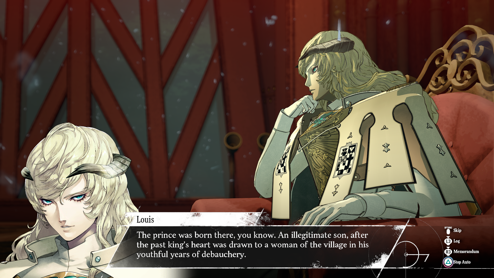 The next set of cutscenes that follow after that are tied to the plot, but it isn't until Louis formally arrives at the royal palace that another relevant scene involving him takes place, and probably the most important one concerning him and Hythlodaeus.