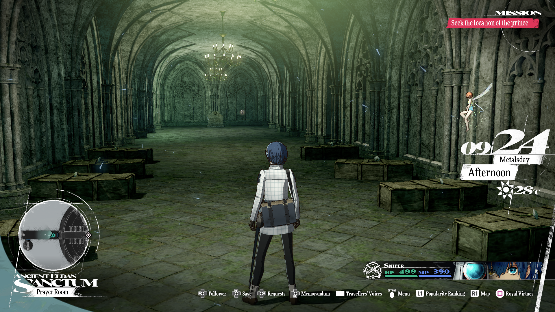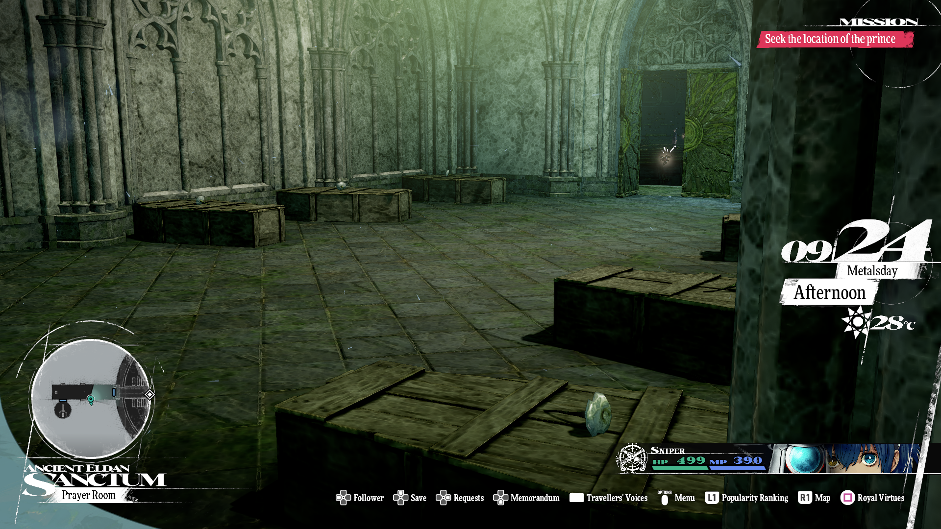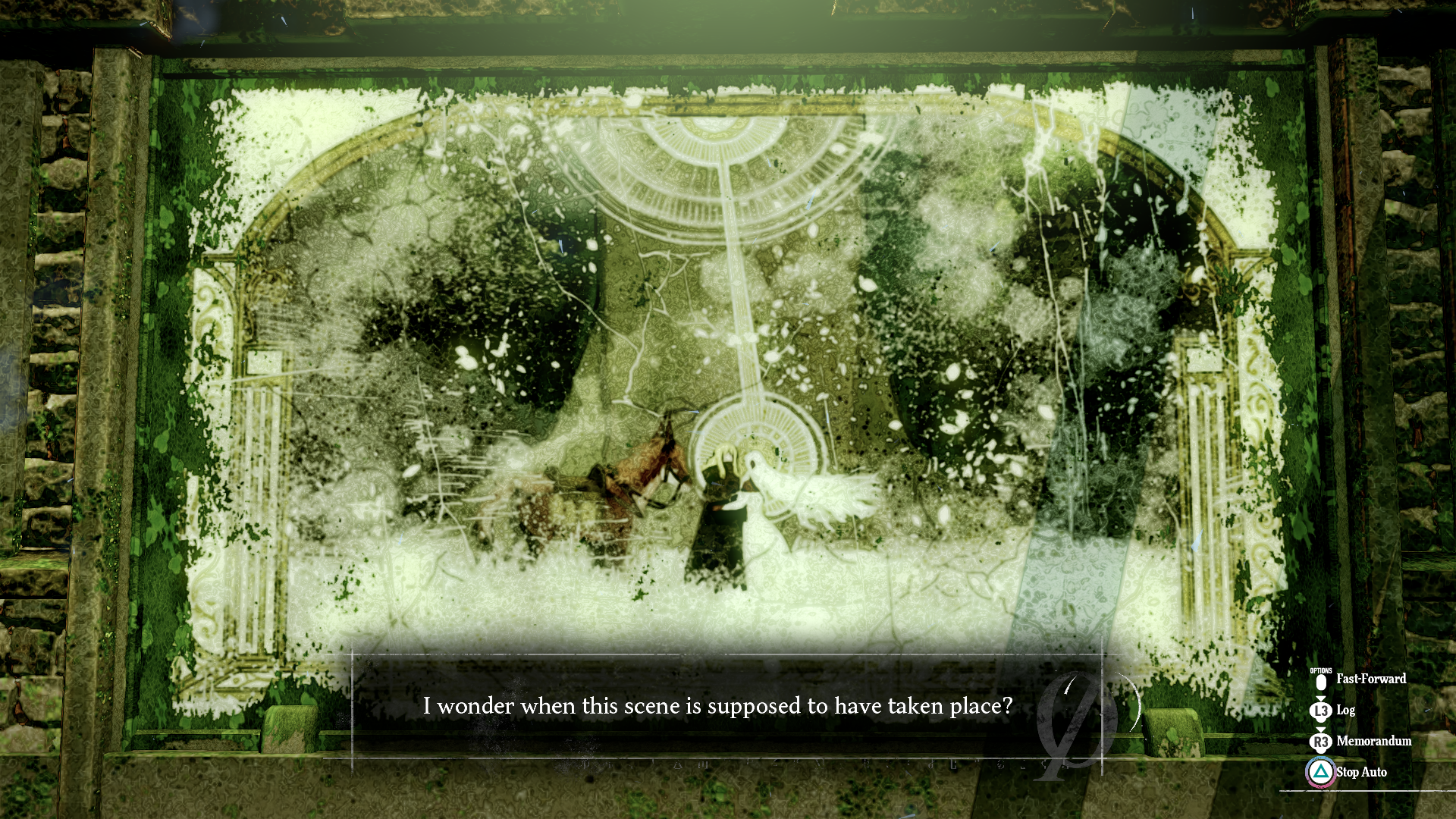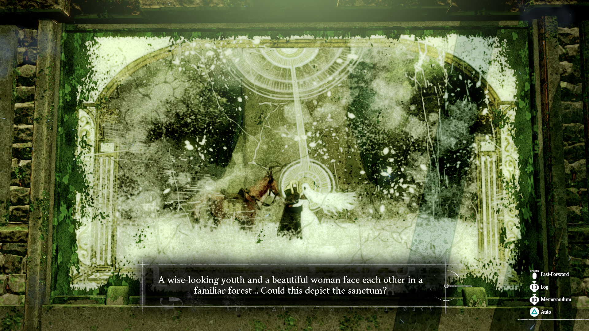 A detail that can be easily overlooked (specially on a first playthrough) is that the Player is capable of exploring special rooms (namely 'Prayer Room' and 'Altar of Secret History') before being forced to move on to the scene where the identity of the 'Prince' is revealed, being forced to enter the Altar of Secret History only to have Gruidae give more exposition. Once Zorba's presence is discovered, no detours are allowed.