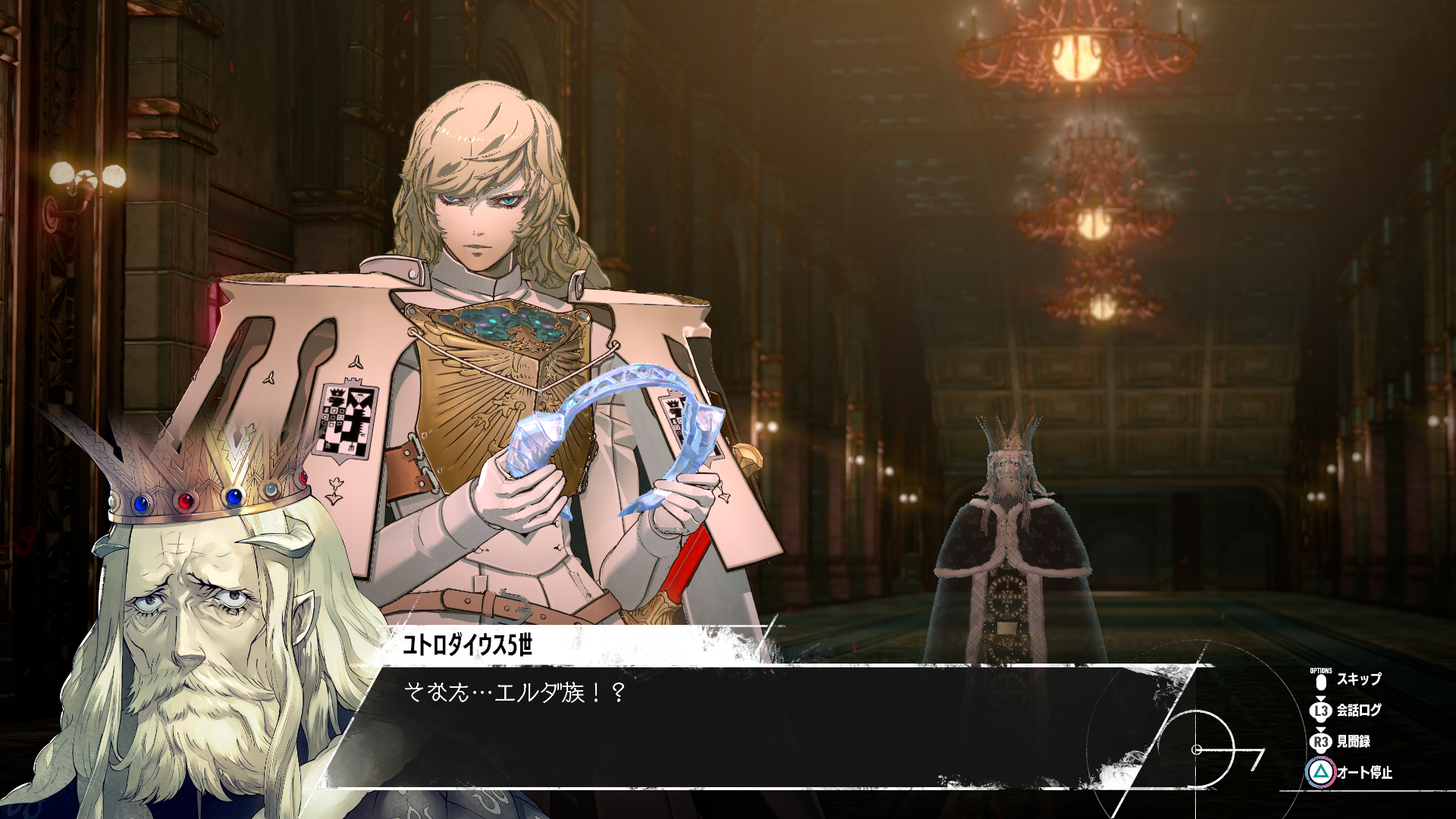 Another detail worth noting is the way Louis refers to people. Louis generally uses “omae”(お前)to refer to anyone, with the exception of Forden and the King, whom he addresses with “kisama”(貴様). The Protagonist is also referred to with ‘kisama’ by Louis momentarily when he reveals his supposed identity as “the Prince”. Hythlodaeus also addresses Louis by “kisama,” at least when speaking directly to him, but once Louis reveals himself as an Elda, he begins to use “sonata”(そなた)