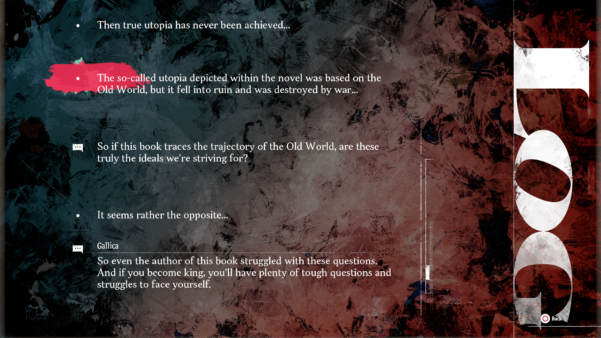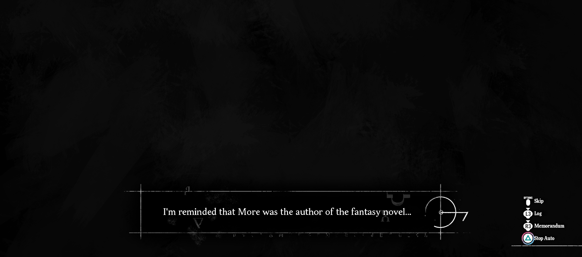I emphasize the final segments of the game, because that is where it's explained that Louis knew Hythlodaeus/More since all the way in his childhood. Knowing this particular detail retroactively changes many of his behaviors and actions at the beginning of the story and even in those final segments when replaying the game.