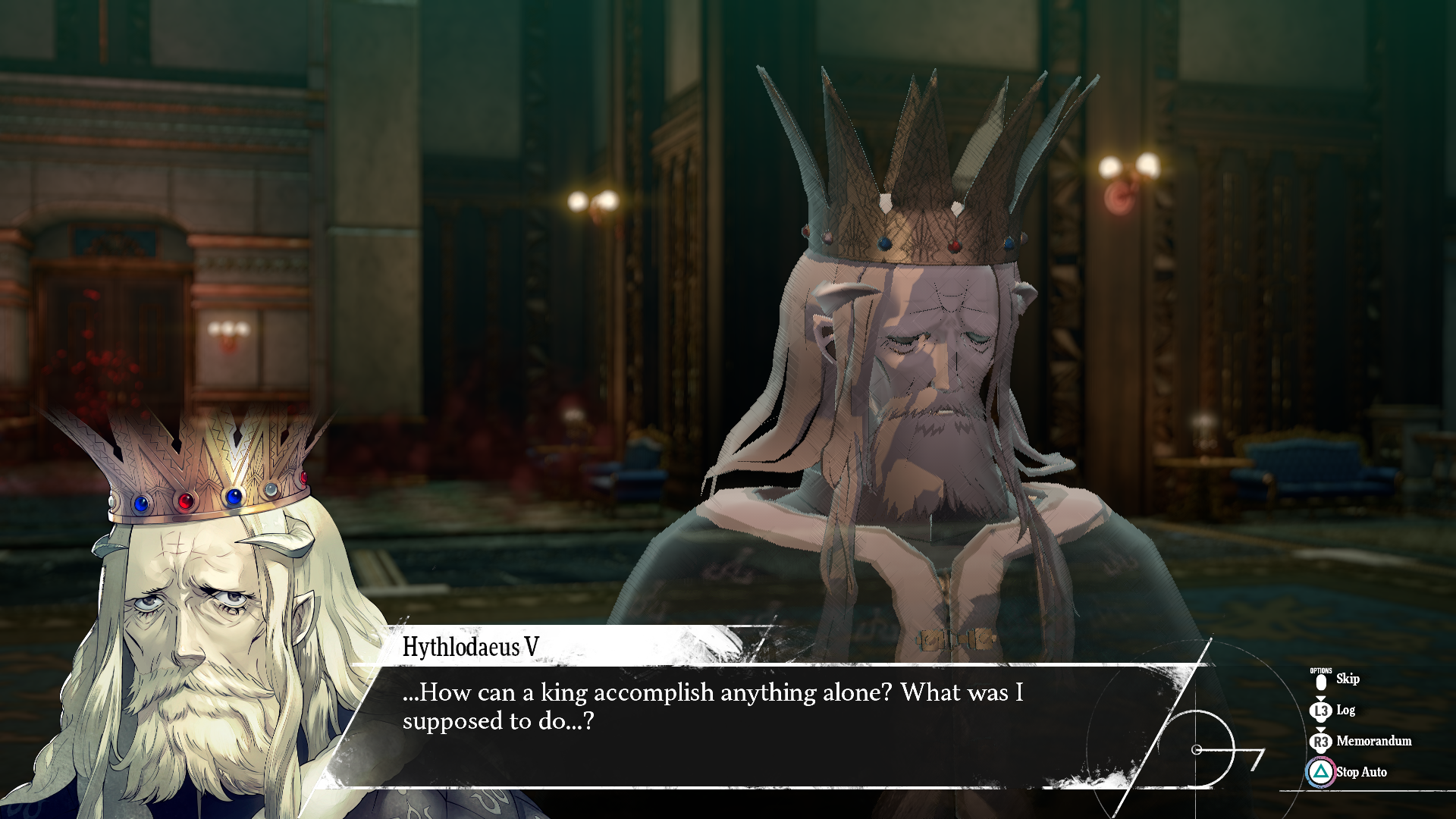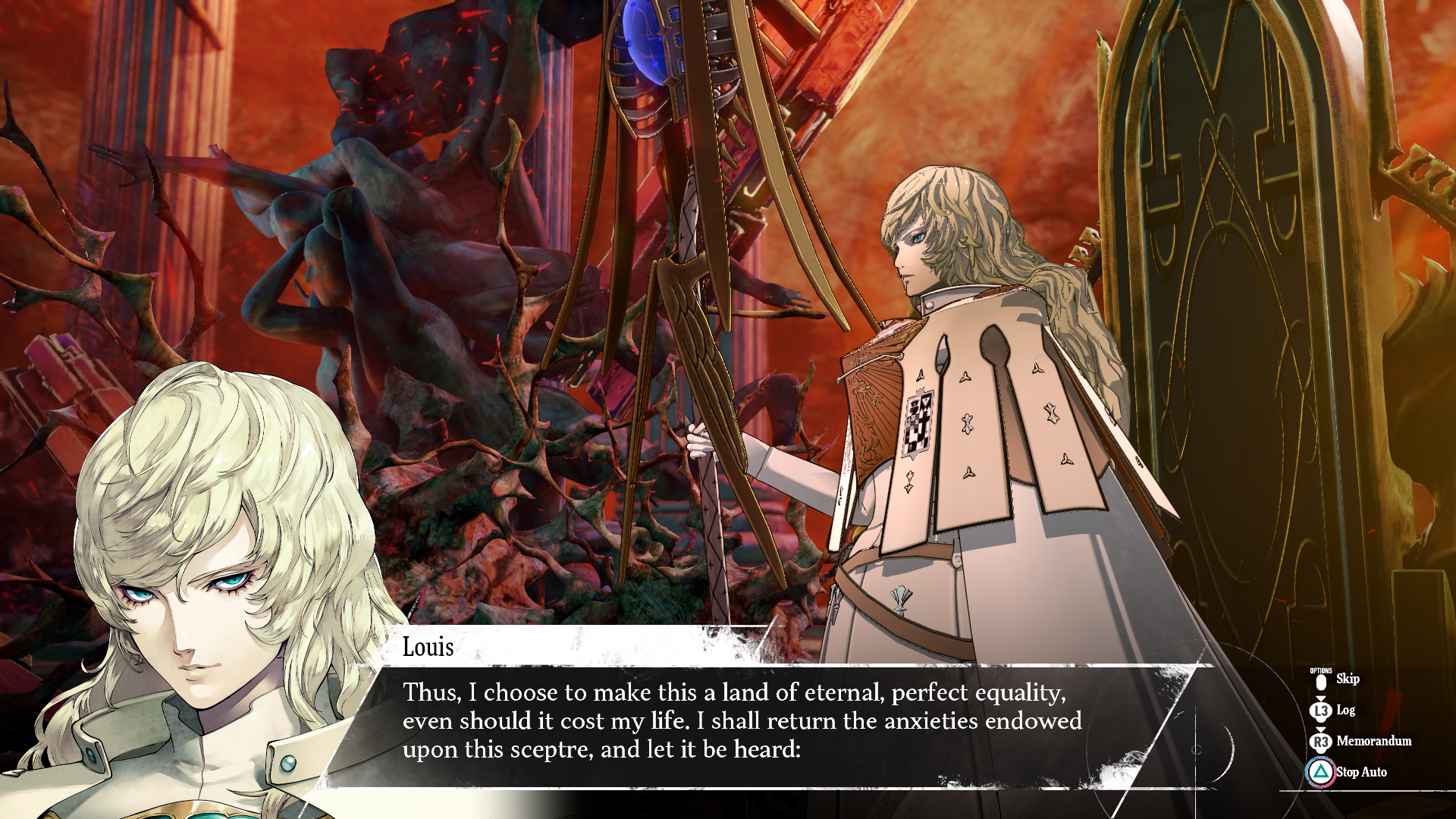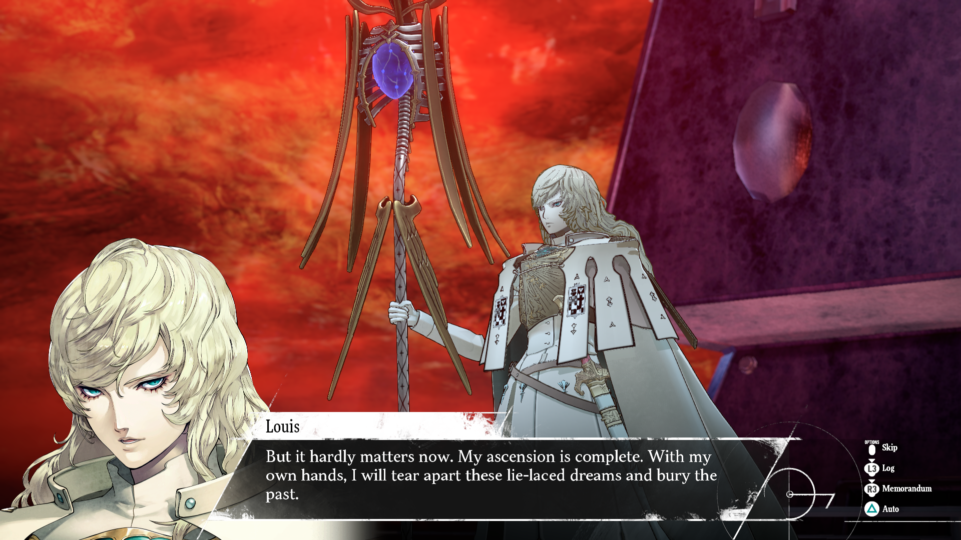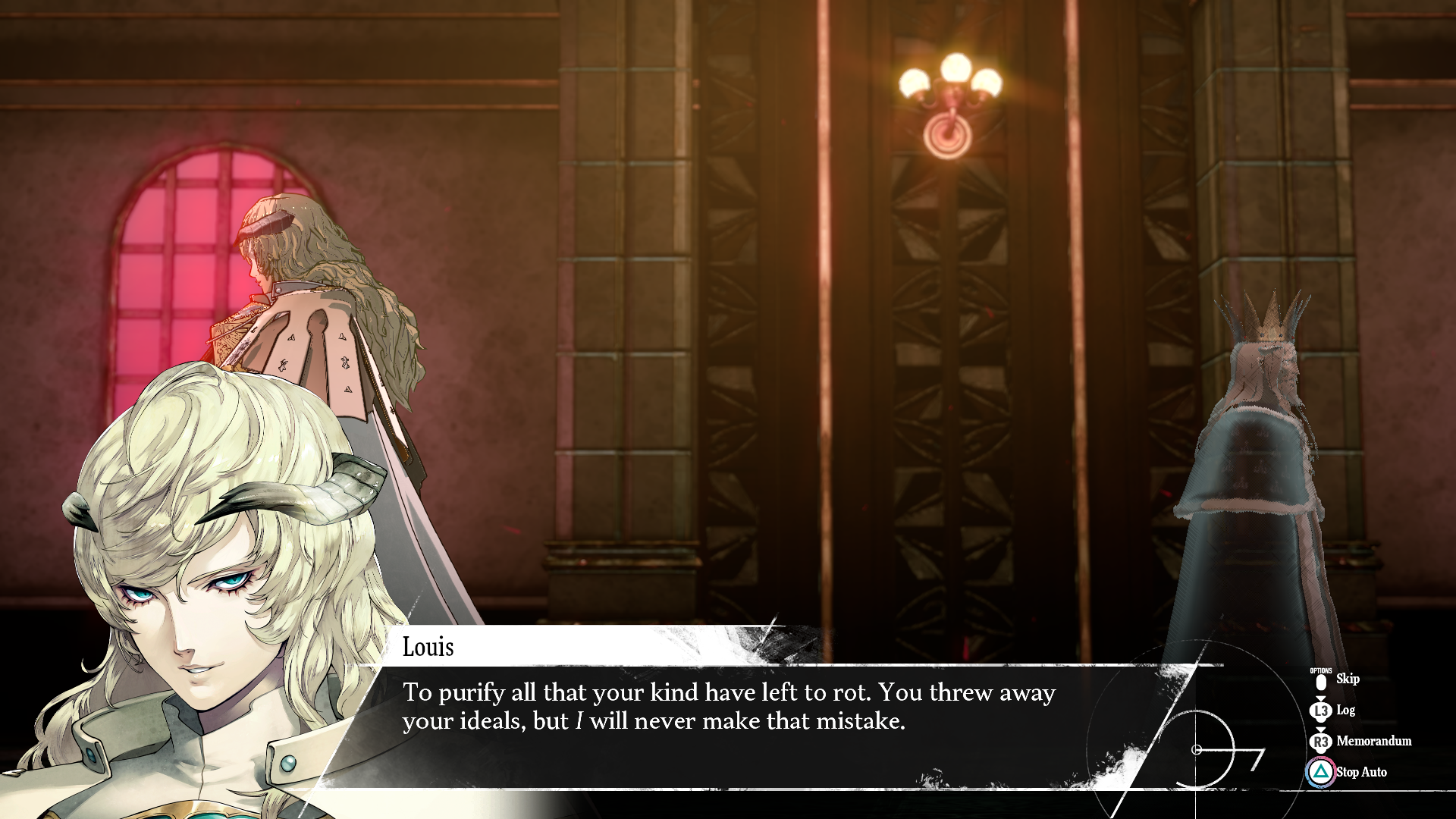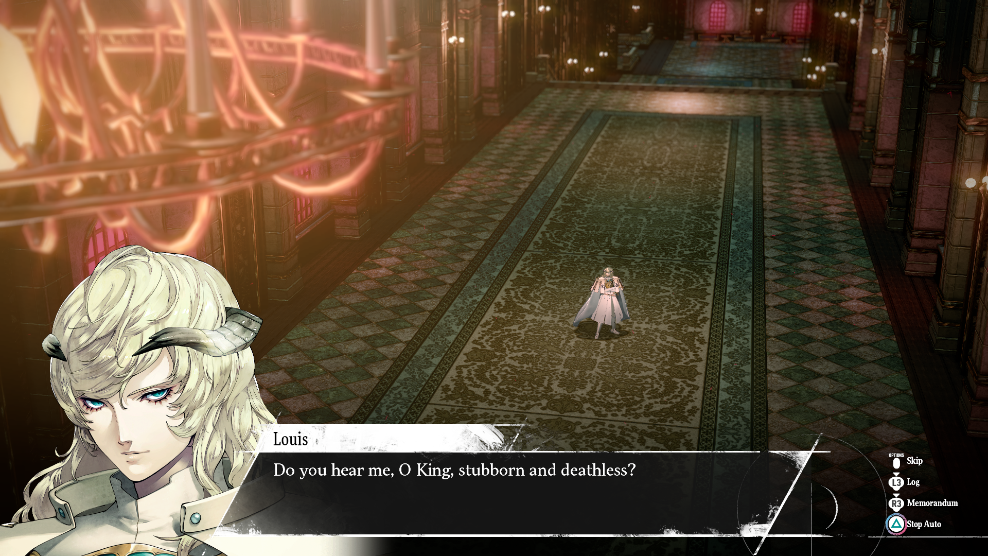 It has never been his own revolutionary dream, but rather the desire to keep Hythlodaeus' fickle dream alive, no matter how much he has twisted it. That scene in the throne room, which is triggered when the Player first enters the Skybound Avatar, is one of the few moments in the game, if not the only one, where Louis speaks to himself. With no need to keep up appearances or deceive anyone, he speaks with complete sincerity, saying that he has never blamed the king for his mistakes and that he will continue to pursue his ideals where the King failed...