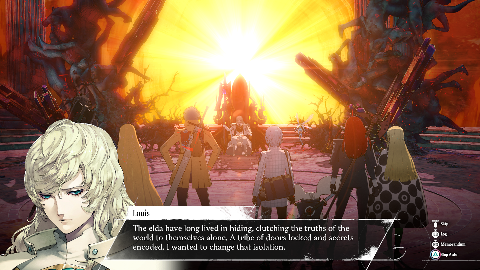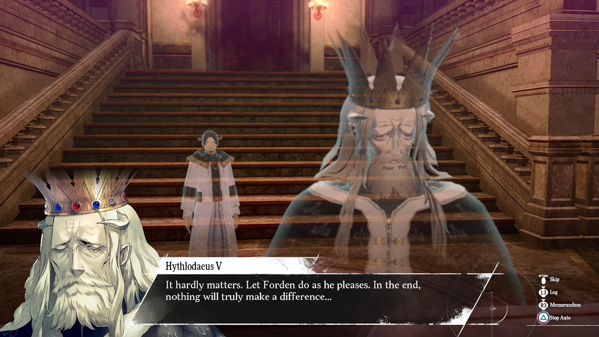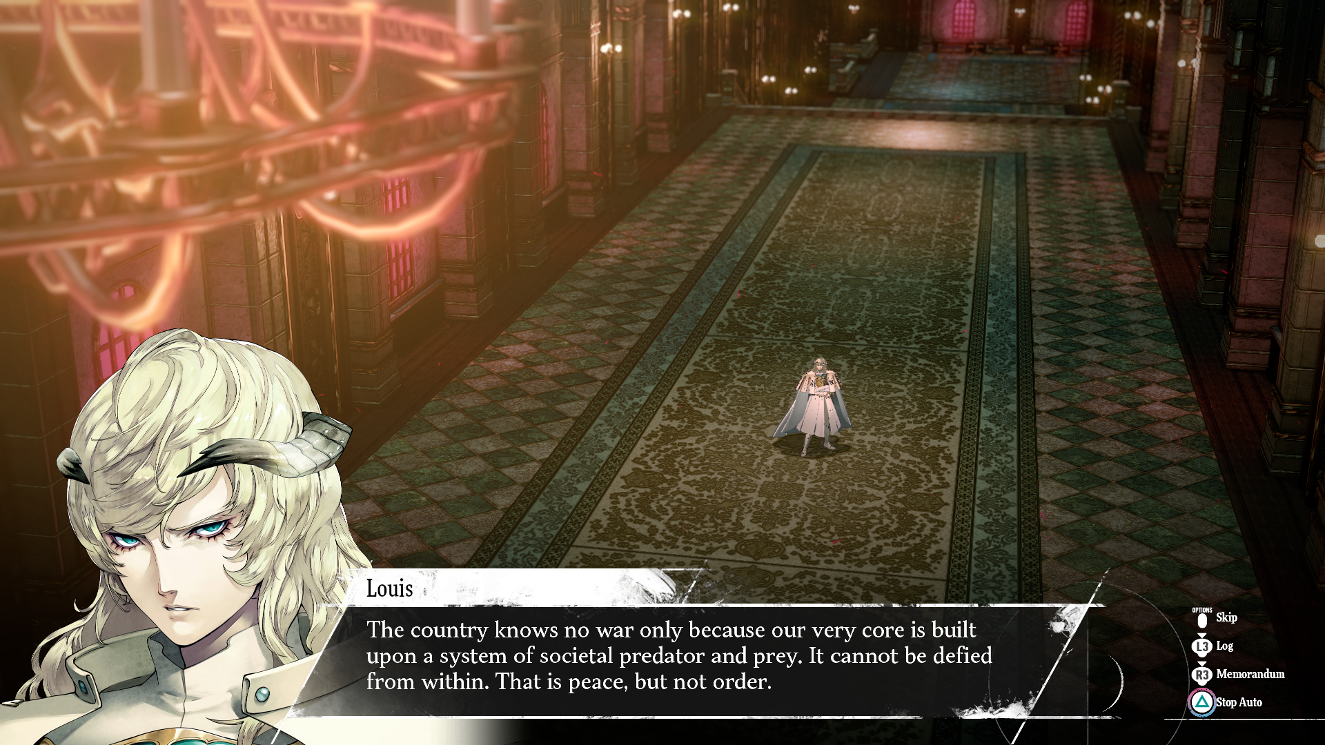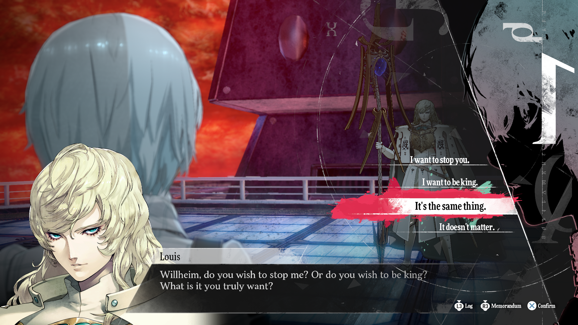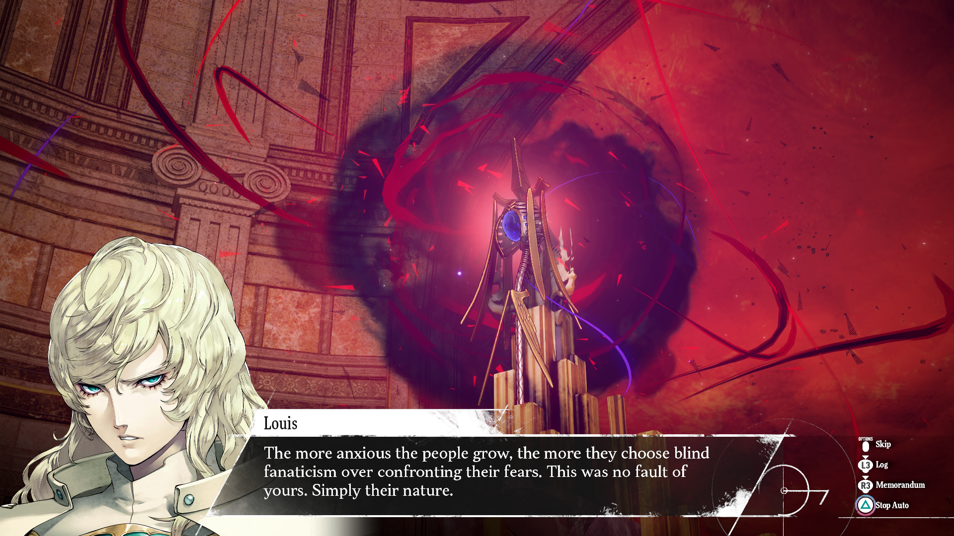 It has never been his own revolutionary dream, but rather the desire to keep Hythlodaeus' fickle dream alive, no matter how much he has twisted it. That scene in the throne room, which is triggered when the Player first enters the Skybound Avatar, is one of the few moments in the game, if not the only one, where Louis speaks to himself. With no need to keep up appearances or deceive anyone, he speaks with complete sincerity, saying that he has never blamed the king for his mistakes and that he will continue to pursue his ideals where the King failed...
