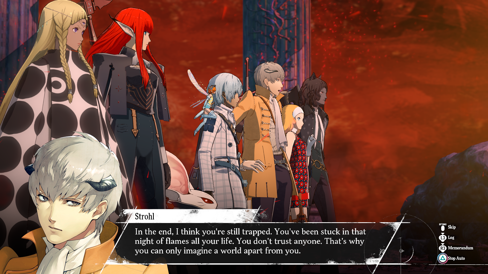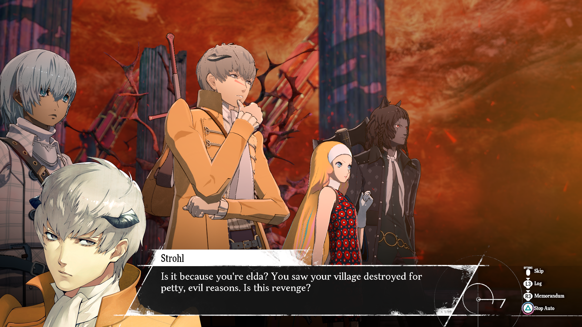 This is when the party (or rather, Strohl) asks Louis what his motives are for taking things this far. If all this is revenge for what happened in Elda Village having witnessed the fire. Strohl tries to relate his own situation to Louis', trying to think that he is as vengeful as he had been, which Louis is not. As Louis says, revenge would be pointless if he simply eradicated those responsible for the fire, since ignorance is much more deeply rooted in the people and is this is the main reason why injustice keeps propagating. If the people do not change at their core, injustice will continue to exist regardless of whether he gets rid of the few people initially responsible.
