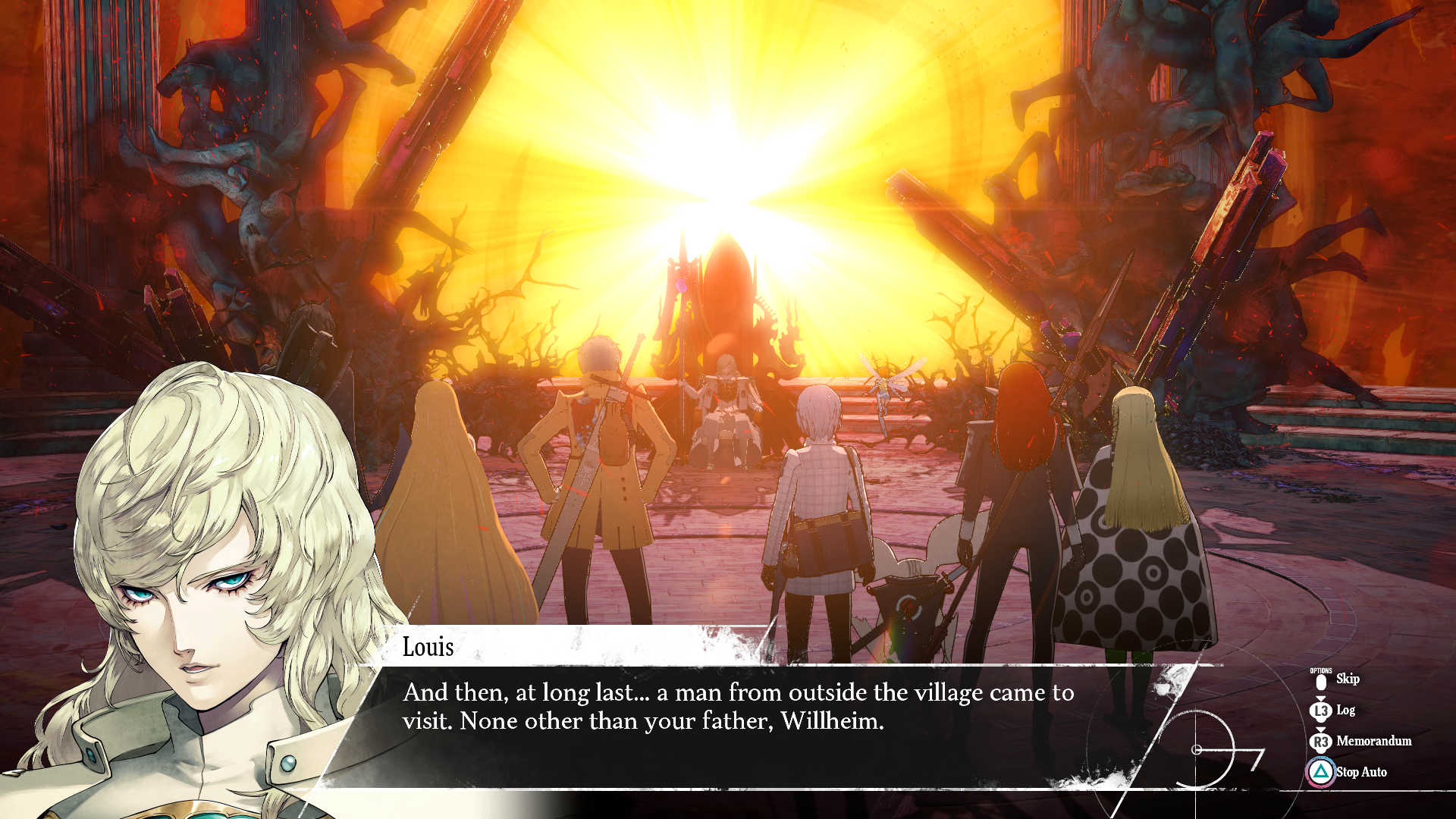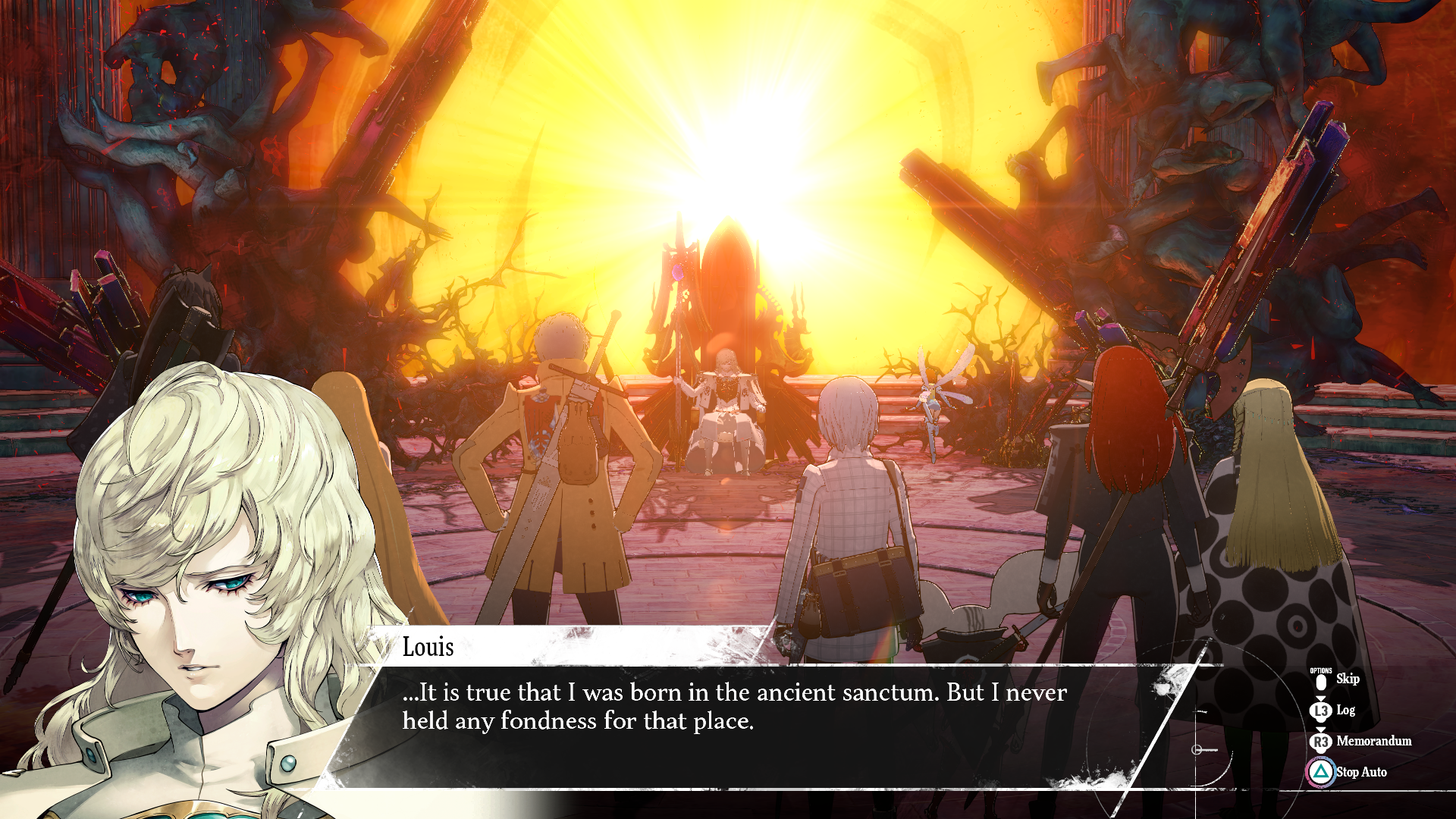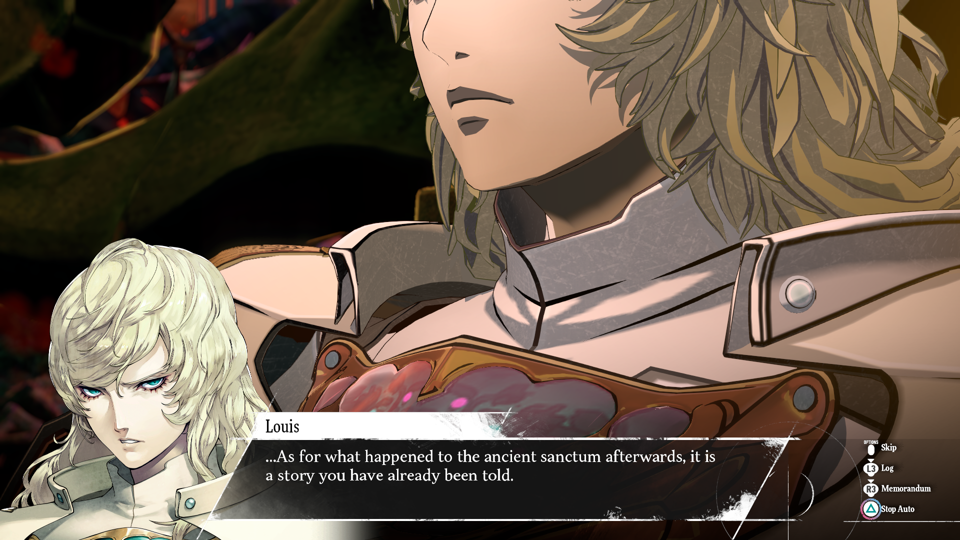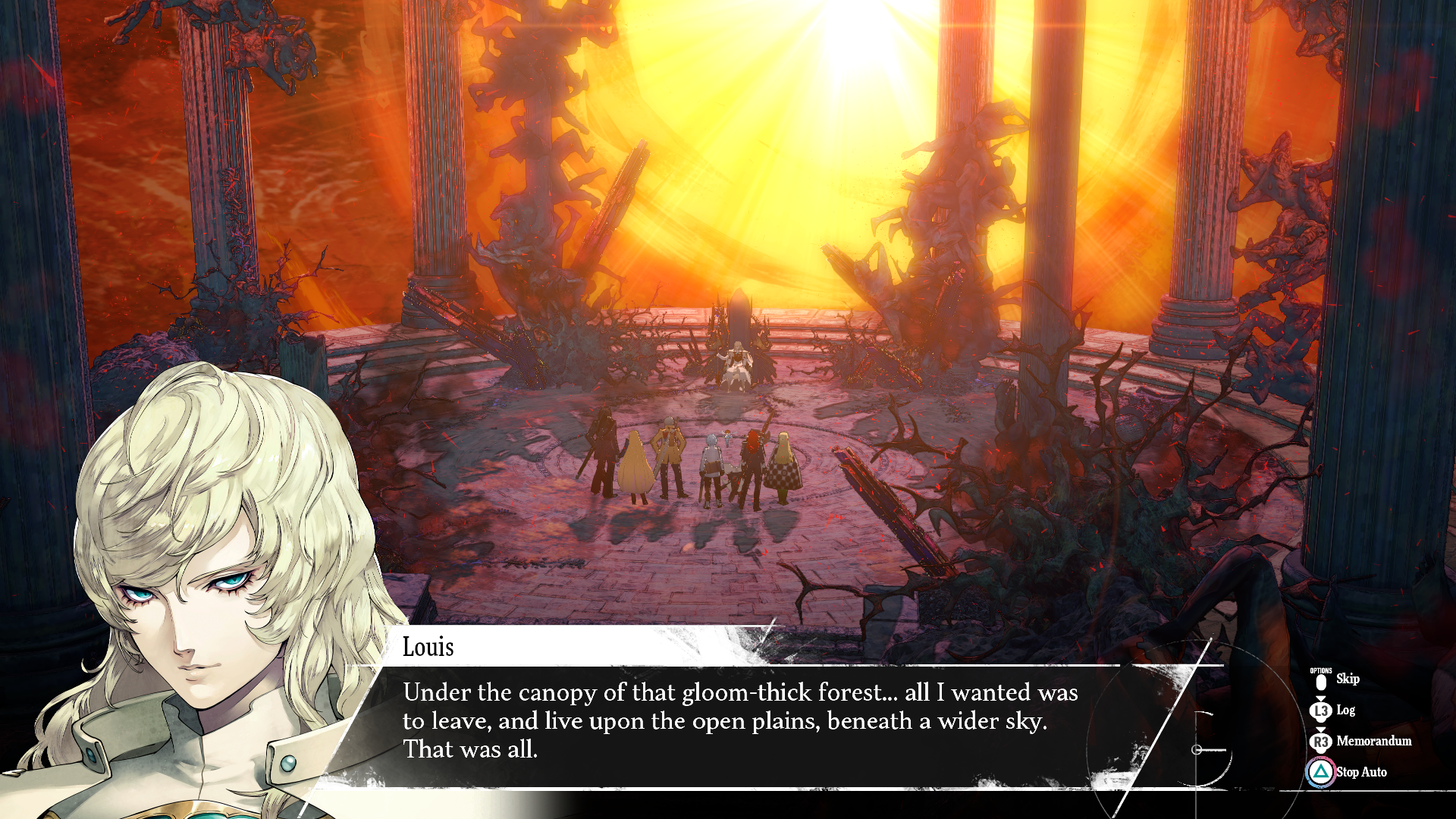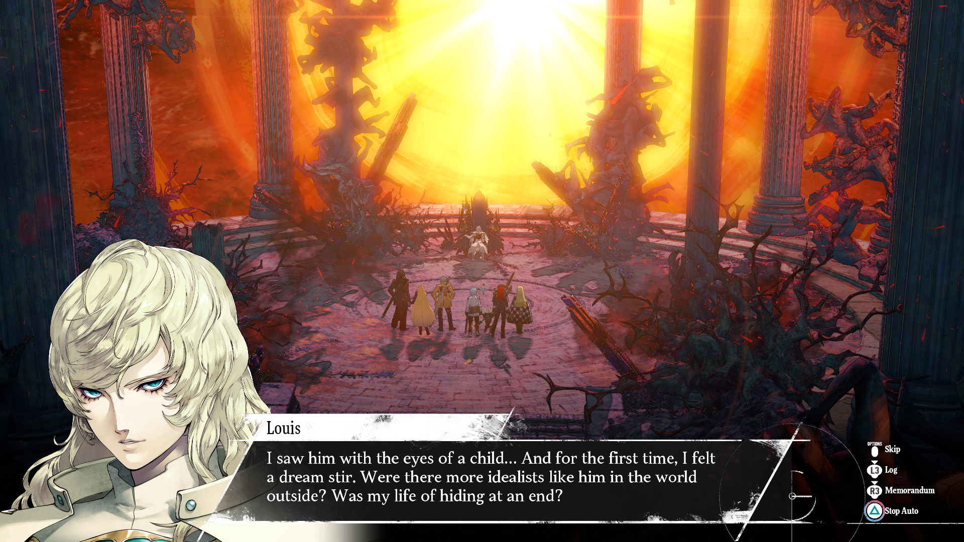 The only scenes featuring Louis that follow appear when the player first enters the Skybound Avatar's dungeon. This is probably the easiest scene to miss in terms of “remembering” due to its brevity, but it's the most significant in terms of Louis' character.