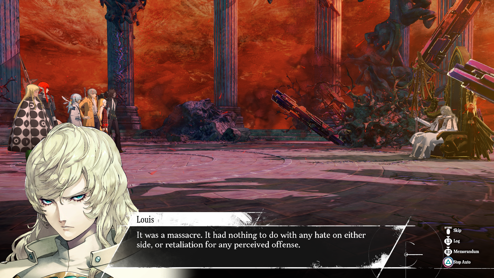 After the battle, Louis is defeated, but he still wants to continue his fight, not giving up. Even staking his life, as long as he can fulfill his vision. From there, dramatic scenes unfold in which the party tries to stop Louis once again, with several degrees of 'danger' approaching them. And in the end, while everyone fights against Humans and appears to sacrifice themselves, the protagonist is left alone with Louis for the last time. However, Louis no longer has time to bargain with the Protagonist.