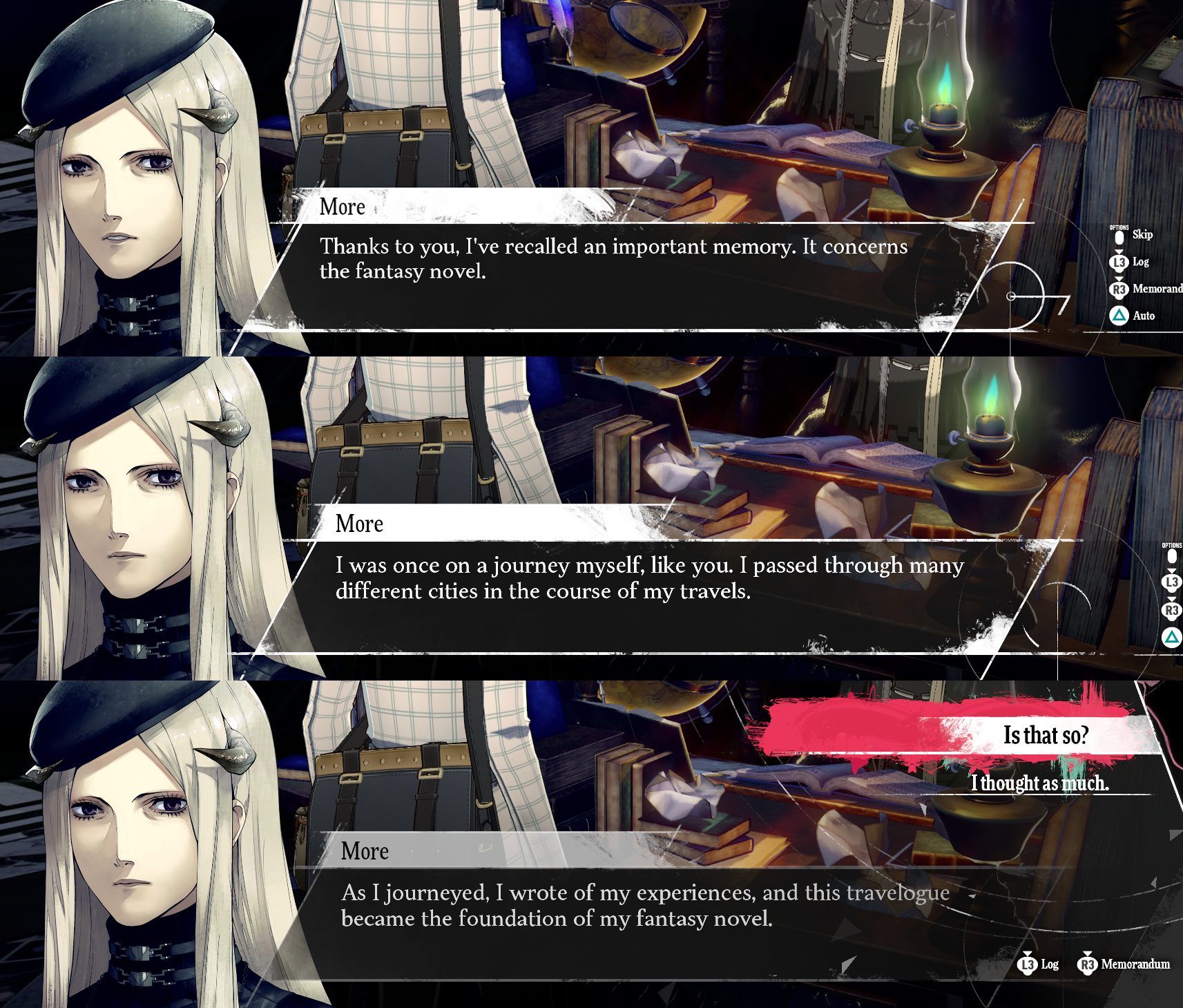 In More's follower bond rank 4, he explains that he once used to go on travels, and as such his experiences would later become part of the fantasy novel he'd wound up writing. The player, to a certain extent, knows that only the Protagonist has the Fantasy Novel. But later on in the story, it's revealed that Louis also owns that novel. The specifics of Louis's ownership of the novel will be talked about later however.